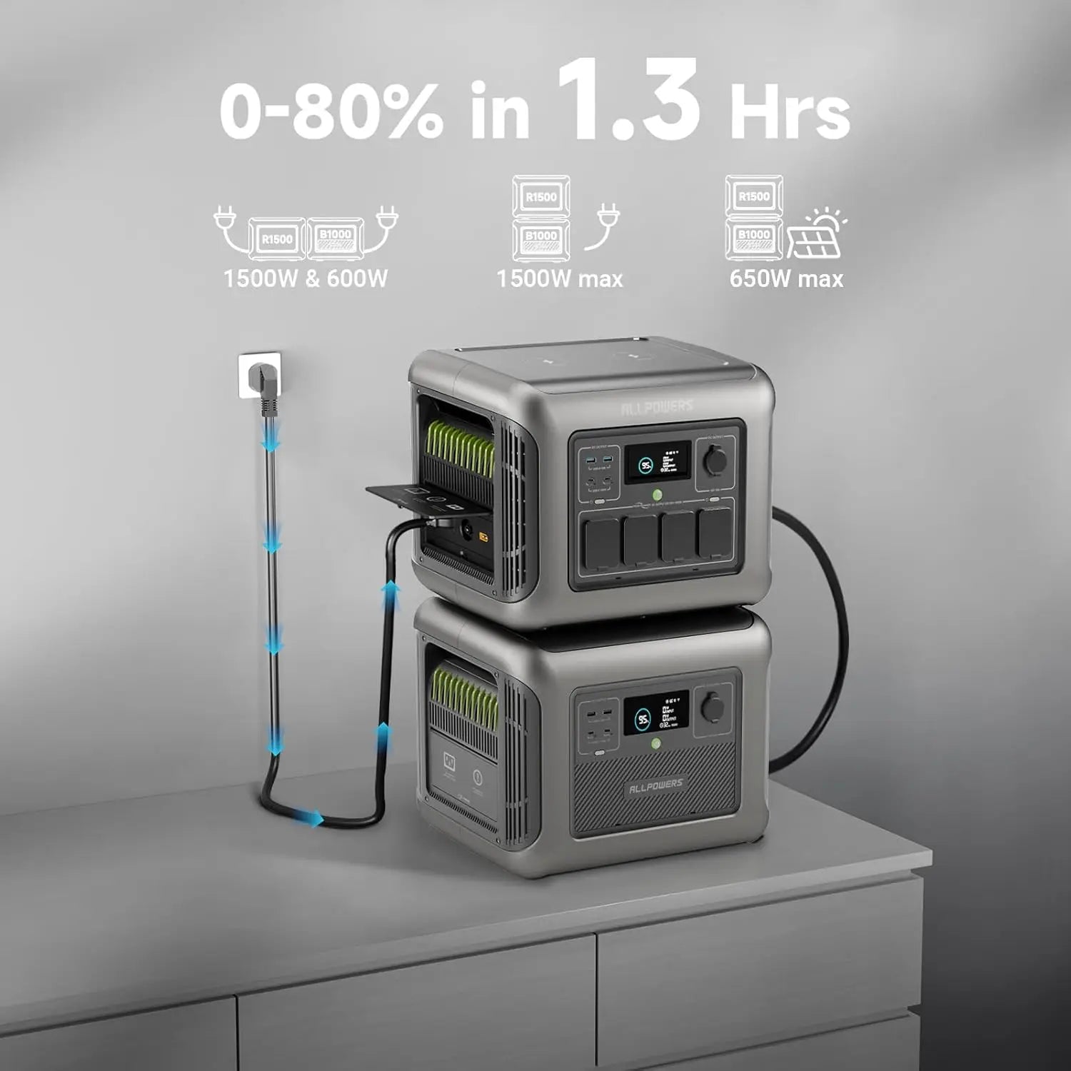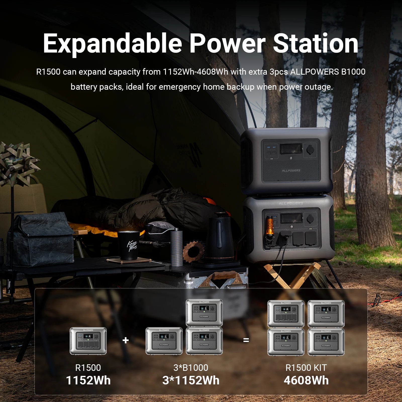 ALLPOWERS Portable Power Station R1500 with B1000 External Battery from 1152Wh to 2304Wh LiFePO4 Battery for Camping RV Home