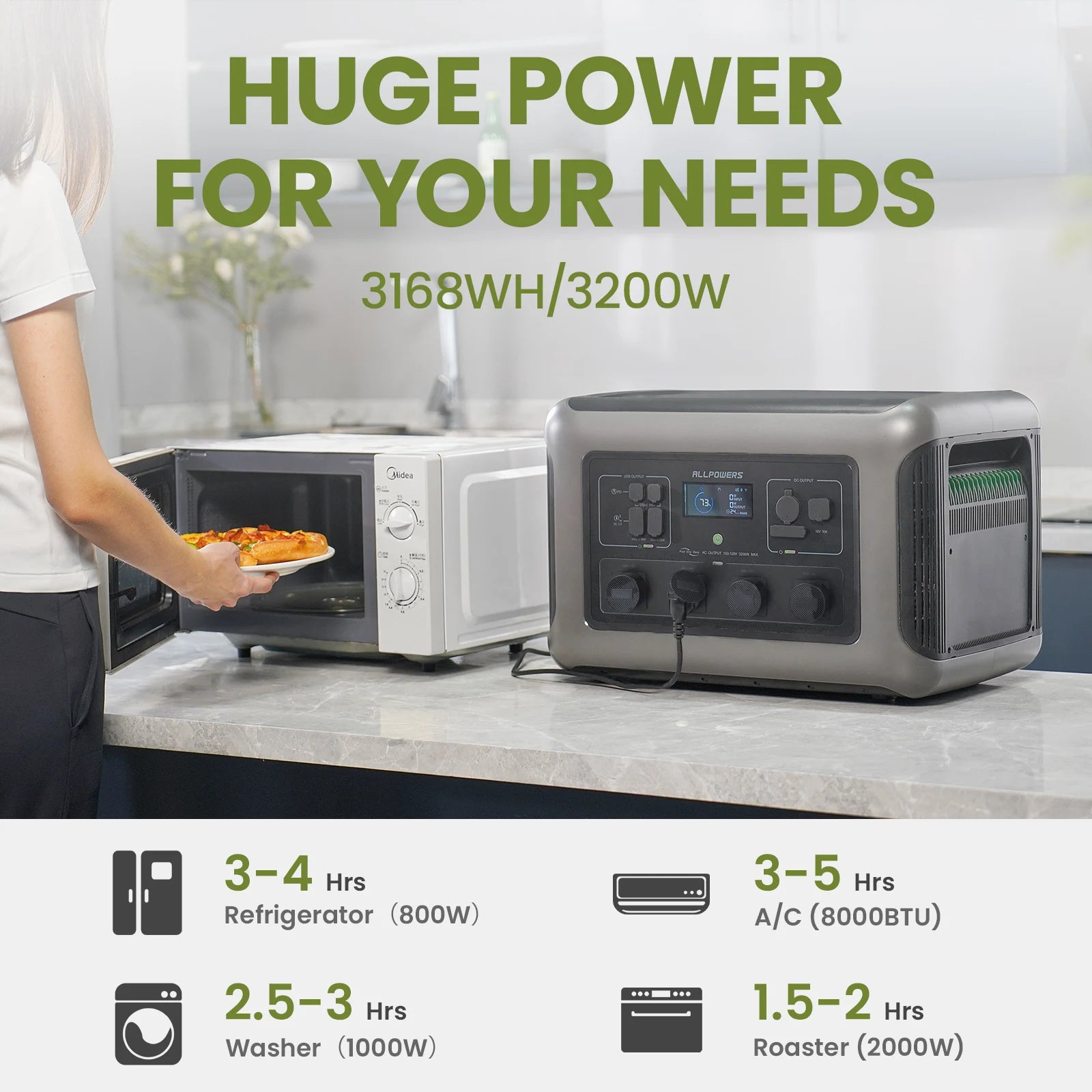 ALLPOWERS R3500 Expandable Battery Portable Power Station 3168Wh LiFePO4 Battery 3500W Solar Generator for Home RV Camping