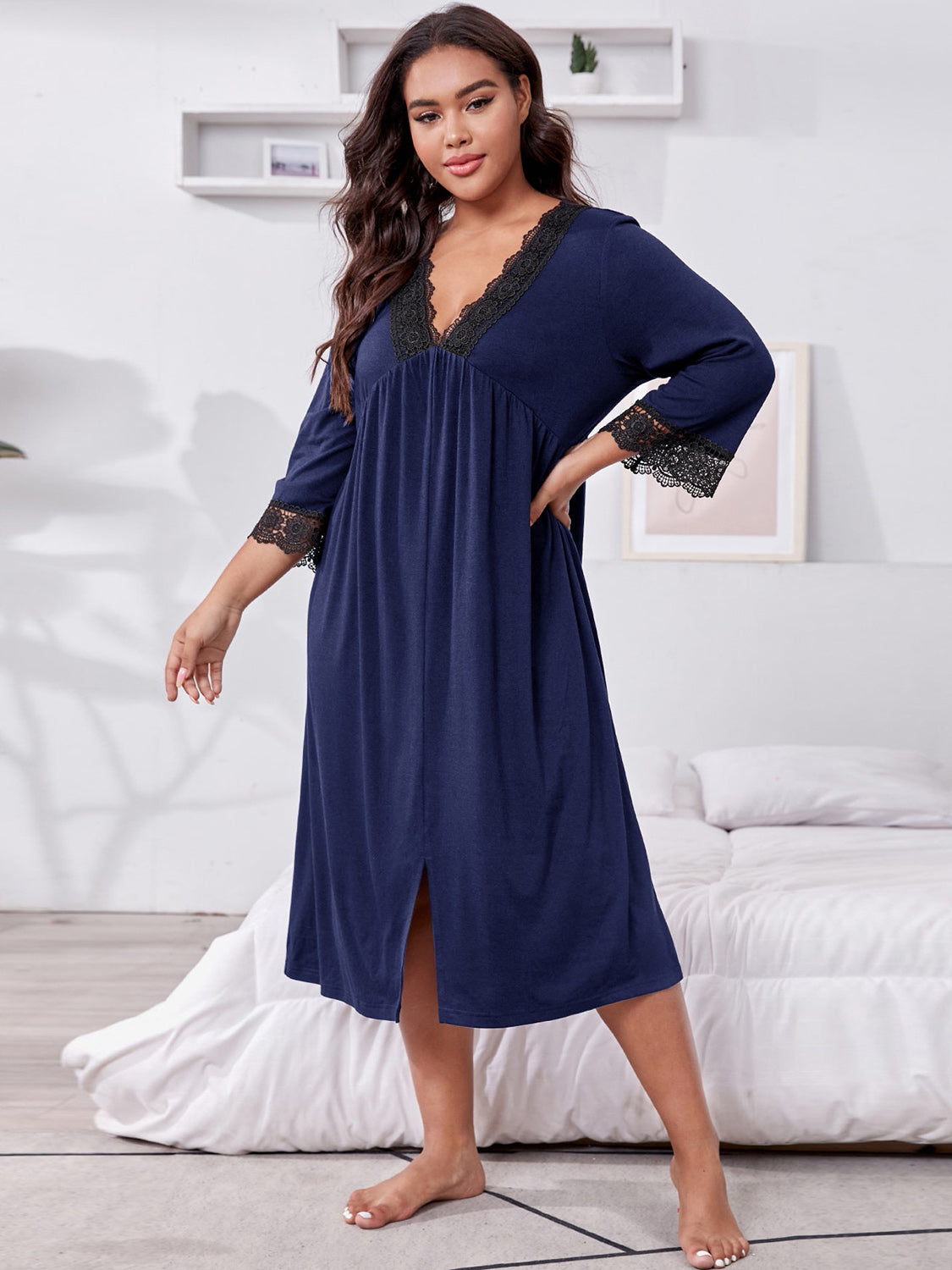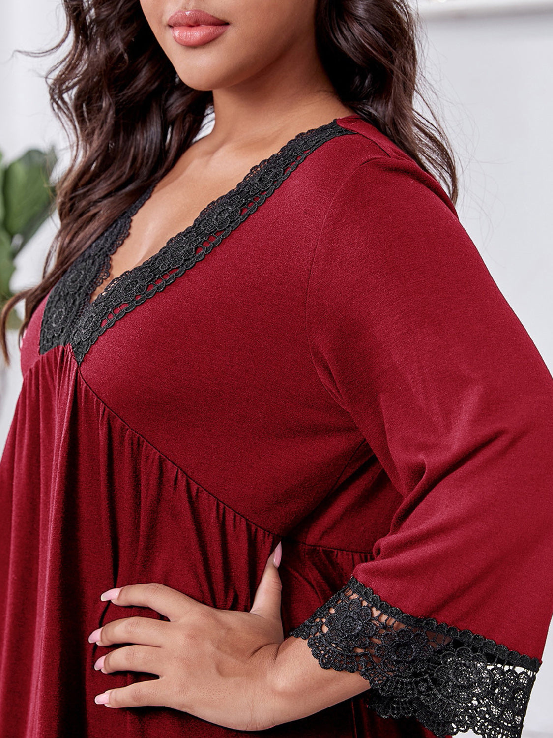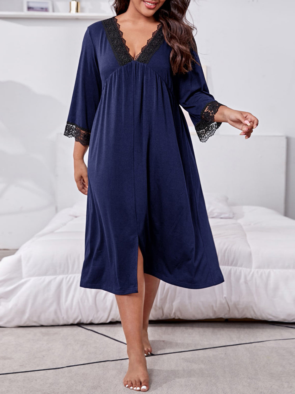 Plus Size Lace Detail V-Neck Lounge Dress