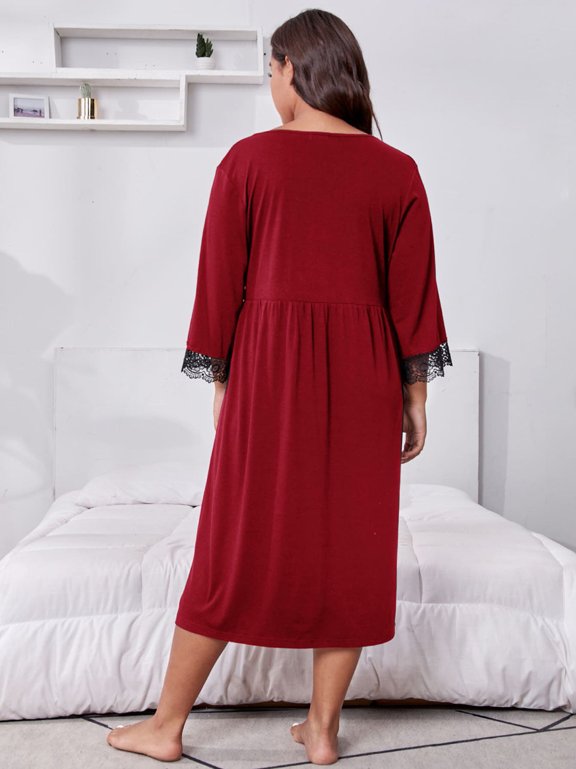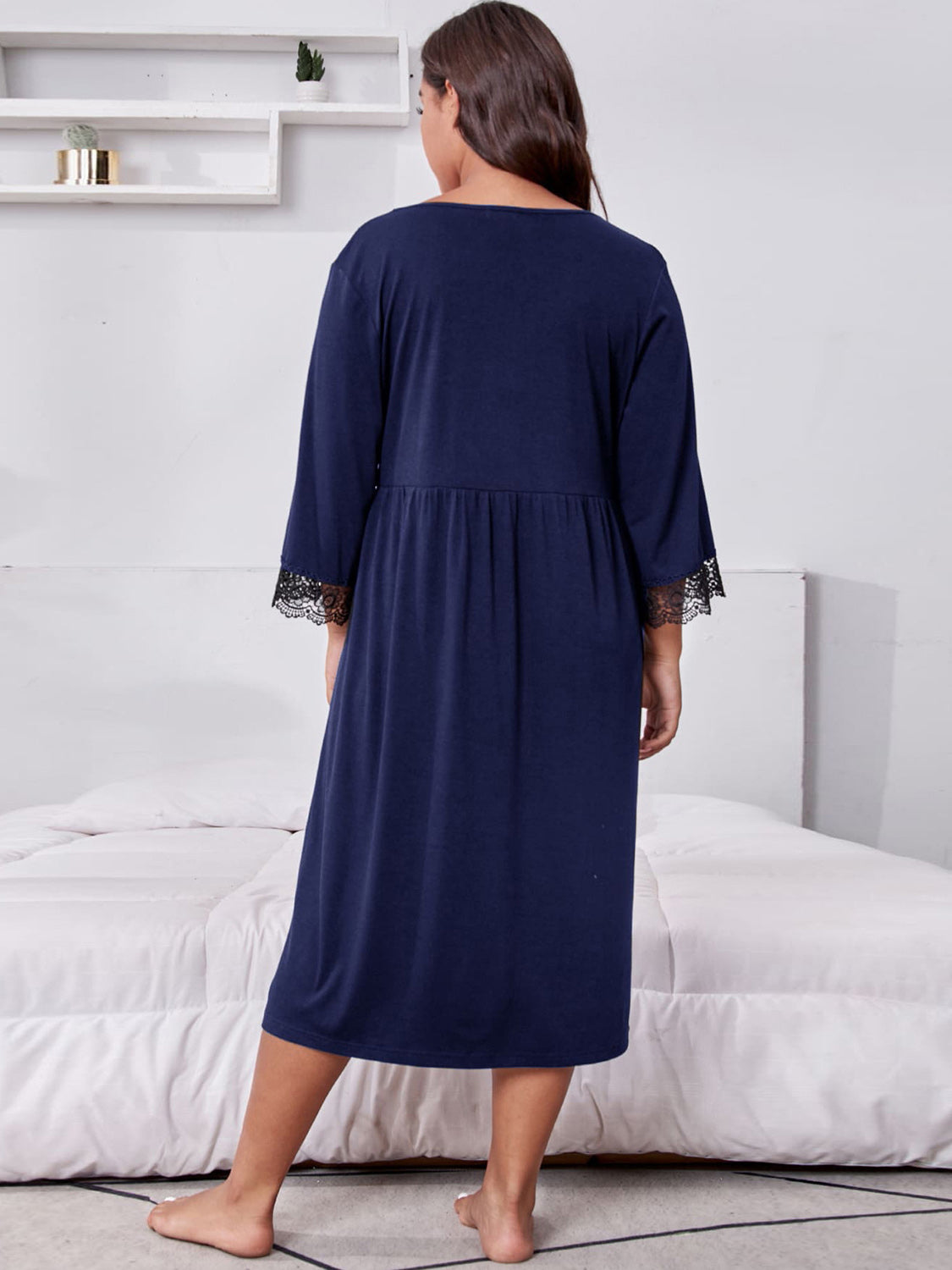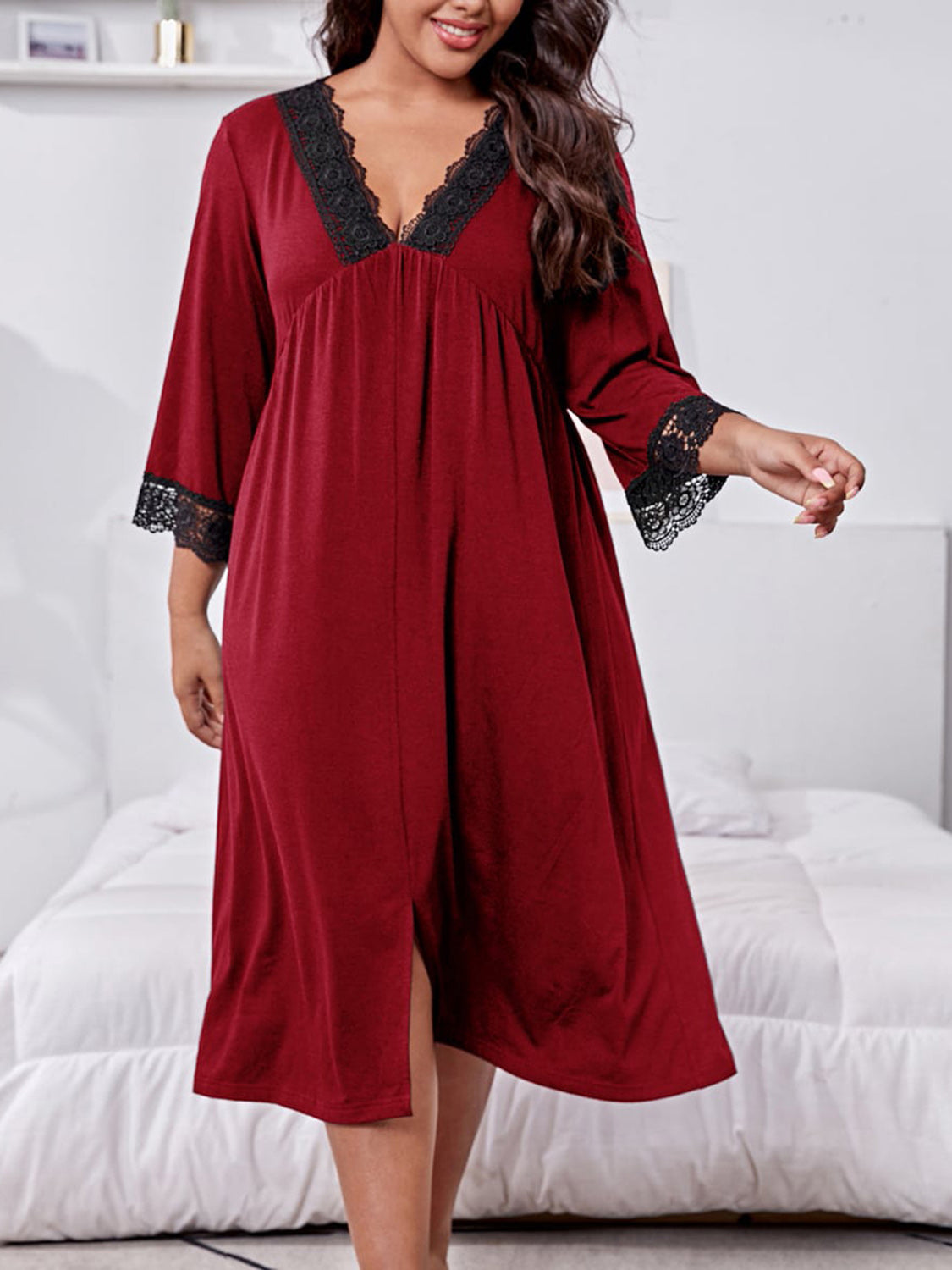 Plus Size Lace Detail V-Neck Lounge Dress