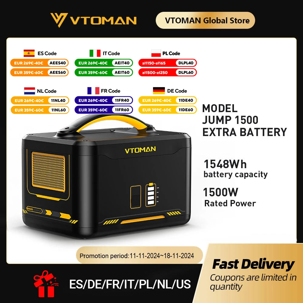 VTOMAN Jump 1500 Extra Battery 1548Wh, Backup LiFePO4 (LFP) Battery Jump 1000 & Jump 1500X & Jump 1800 Power