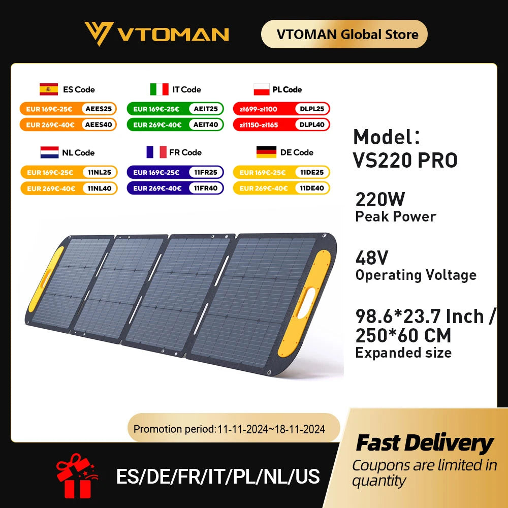 VTOMAN VS220 PRO 220W Solar Panel Kit Complete 48V Power Portable Outdoor Rechargeable Solar Cell Solar Generator for Home