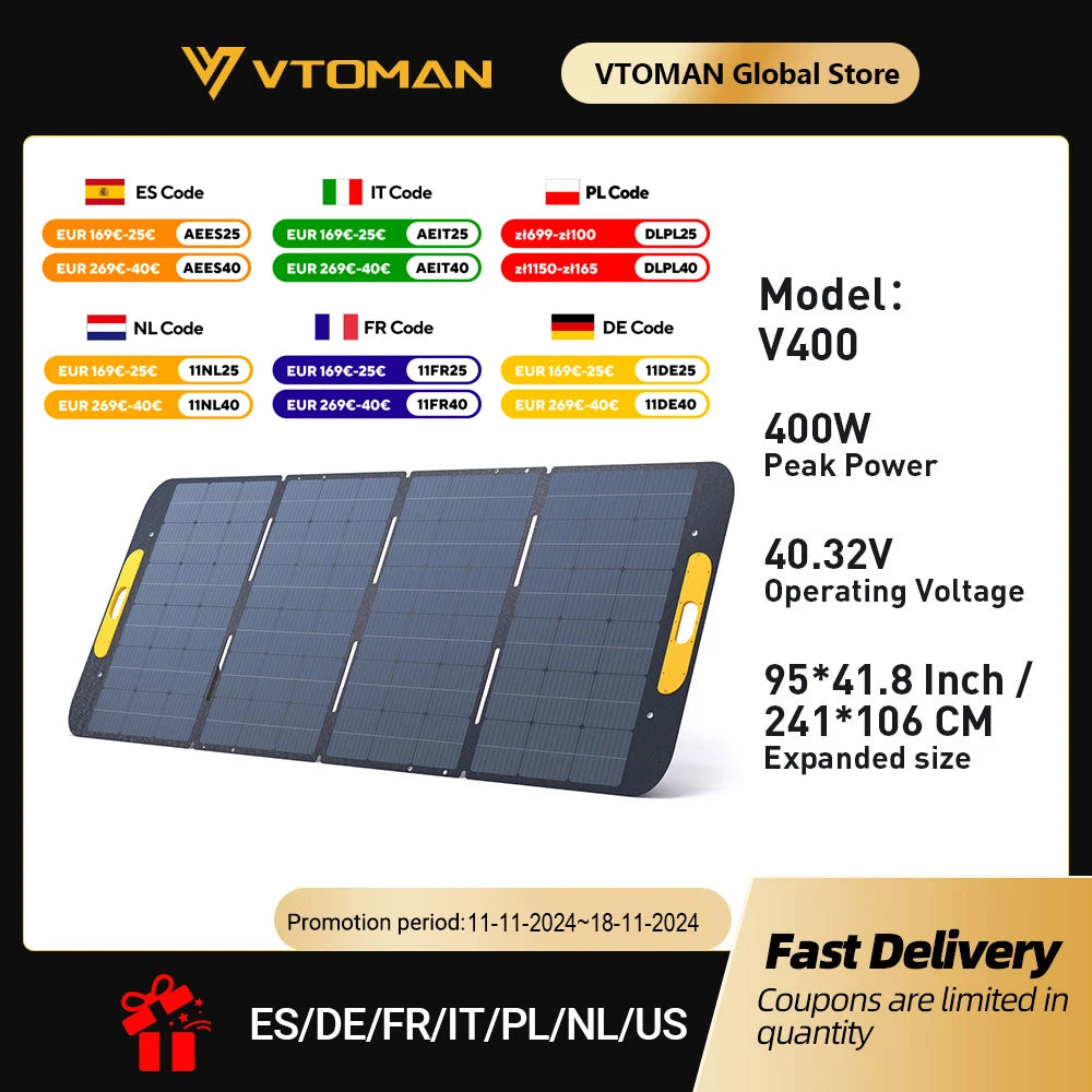 VTOMAN VS400W Foldable Solar Panels Cell 40.32V Portable Solar Charging Panel Complete Kit for Outdoor Tourism Power Station